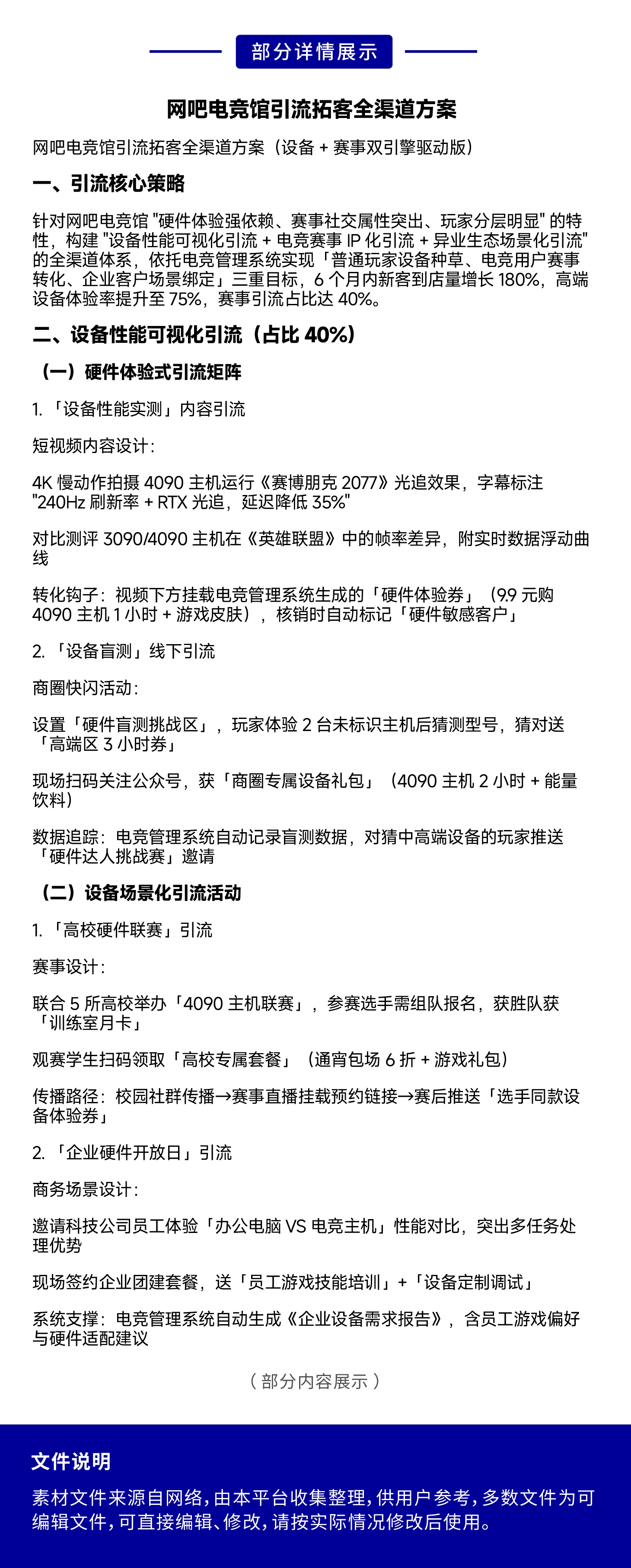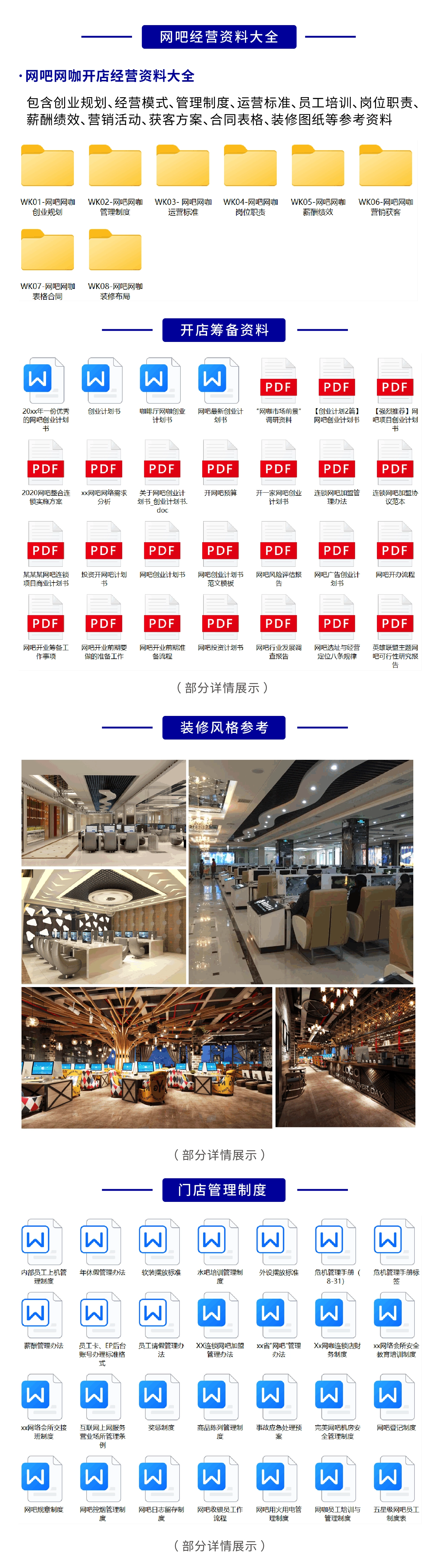 网吧网咖经营资料大全:我们为您提供网吧网咖经营参考资料,包含创业规划、经营模式、管理制度、运营标准、员工培训、岗位职责、薪酬绩效、营销活动、获客方案、合同表格、装修图纸等网吧网咖经营参考资料,电子版文件,简单修改即可应用,为您开网吧提供经营参考资料。